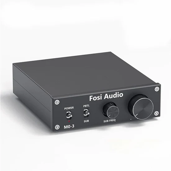 Fosi Audio M03 er en kompakt 200W subwoofer- og mono-forstærker med PBTL/SUB-tilstande, lav forvrængning og ren HiFi-lyd perfekt til små lydopsætninger og subwoofere.